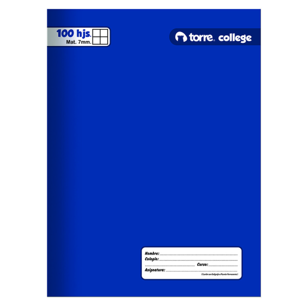 CUADERNO COLLEGE TORRE LISO MAT. 7MM. 100 H
