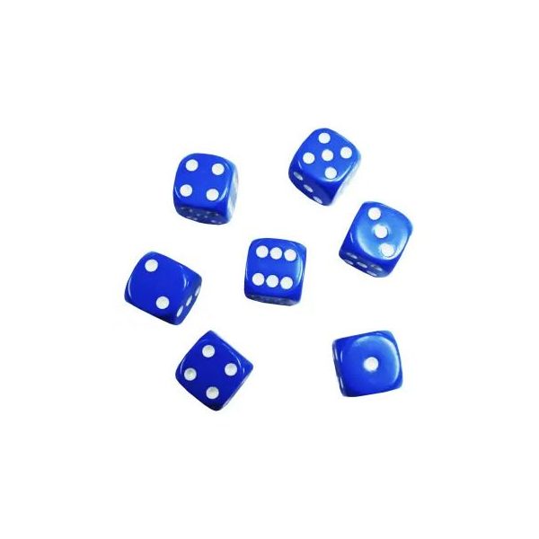 Set de 50 Dados, punta redonda de color azul con medida 19 MM. Para uso didactico en aplicacion matematica y juegos de azar.