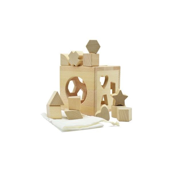 Cubo de encaje de madera natural con medidas 13 x 13 cm, compuesto por 12 piezas encajables de tamano de 3,5 cm y 6 cm . Permite que los ninos y ninas aprendan a dominar los estimulos visuales, desarrolla habilidades motrices y la exploracion a traves de las distintas formas. Contiene 1 bolsa de genero para guardar las piezas. Presentacion caja de carton.