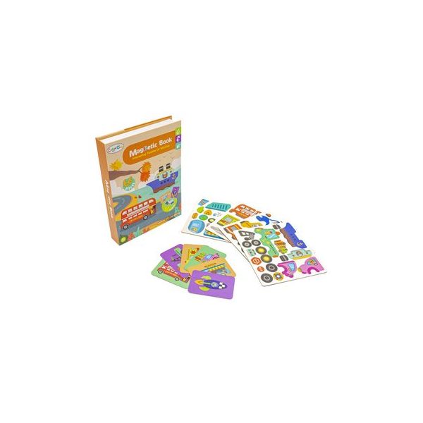 Puzzle magnetico. Set se presenta en caja tipo libro que contiene 66 piezas para ensamblar, ademas de 6 tarjetas magneticas lado y lado, todas magneticas. Medidas caja 19 x 26,7 x 4 cm. Todo fabricado en carton duro.