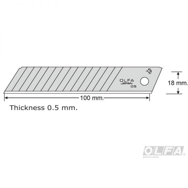Repuesto hoja 18 mm para modelos de cuchilloL-2, L-3, L-5, L5-AL, SL-1, EXL, XL-2, NOL-1, NL-AL y ML, NXL-500,OL-LL,CMP-2. Ideales para cortar yeso, linoleo, alfombras, pisos, aislamiento y materiales para techos. Contiene 10 unidades de 14 segmentos