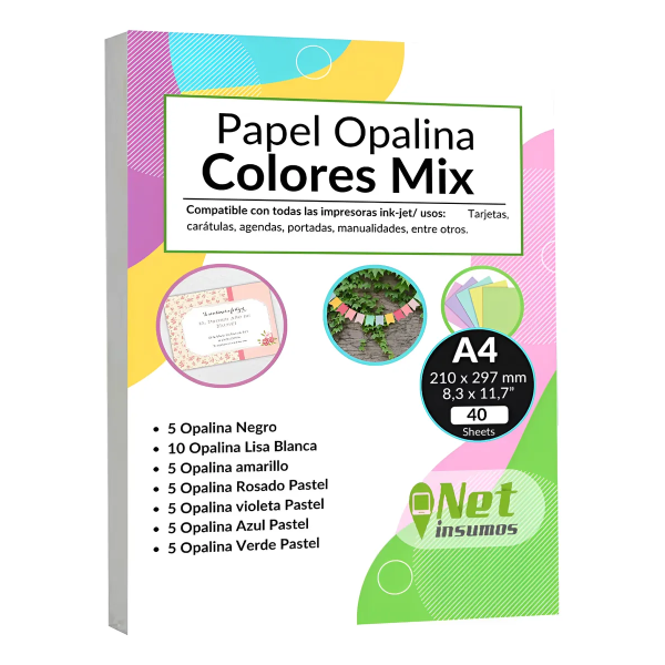 Papel Opalina Colores Doble Faz 220gr Mix A4 40 Hojas Blanco