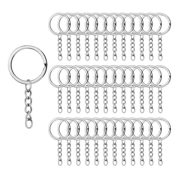 100 Argollas Para Llavero 30mm Con Cadena + Argolla Unión