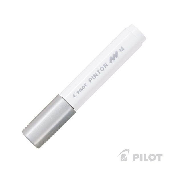 Marcador de tinta pigmentada a base de agua punta media, color plateado. Permite dibujar en todo tipo de superficies, incluso oscuras. Permanente en superficies porosa como madera, papel, carton, tela o piedras. En superficies lisas se recomienda fijar con un barniz transparente o bien sometiendo a altas temperaturas. Secado rapido. Desechable.