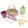 Set de jardineria plastico BIO compuesto por 1 canasta, 1 regadera 16x10x17cm, 3 maceteros de 10 cm de diametro x 8,5 cm de alto, 1 rastrillo de 18,5x7x3 cm, 1 pala de 18,5x7x3 cm, 3 letreros de 12x3 cm para los cultivos con stickers. Medida de la canasta: 23 x 17 x 19 cm. Desarrolla motricidad, creatividad, imaginacion, trabajo en equipo y fortalece el juego de roles. Presentacion malla plastica.