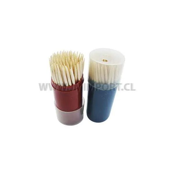 Set de doce envases plasticos de mondadientes. Presentacion en caja de 18x29x58 cm.