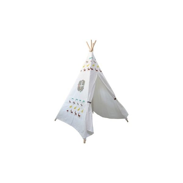 Carpa de indio para ninos y ninas, material de genero, base de madera de tamano 1,80 mt alto x 105 x 132 cm. Desarrolla habilidades sociales, juego de roles, imaginacion y lenguaje oral.