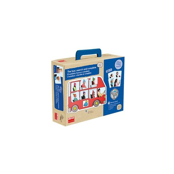 Set compuesto por 1 maxi dado plastico con medidas 3,5 cm, 36 laminas de carton termolaminado con medidas 5 x 4 cm y 6 tableros de autobus de carton termolaminado, medidas 22 x 15 cm. Fortalece el desarrollo del vocabulario basico, comprension y practica del concepto, asociacion logica, pensamiento abstracto, observacion y fortalece la coordinacion motriz.