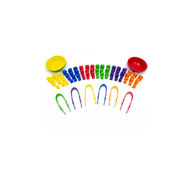 Maximize Juego de clasificacion de osos proporcionales, compuesto por 72 osos de 6 colores diferentes de material plastico resistente, en 3 tamanos 2.5, 3.5 y 4 cm, con gramajes de 4, 8 y 12 gramos, 2 pinzas plasticas de colores , medidas 13 cm y 6 platos plasticos de colores de 14 x 4 cm., ademas de un dado blando de 3,5 cm. por lado. Desarrolla la motricidad fina, coordinacion visomotriz y fortalece las actividades de clasificacion, seriacion y asociacion. Presentacion en bolsa de plastico con cierre hermetico.