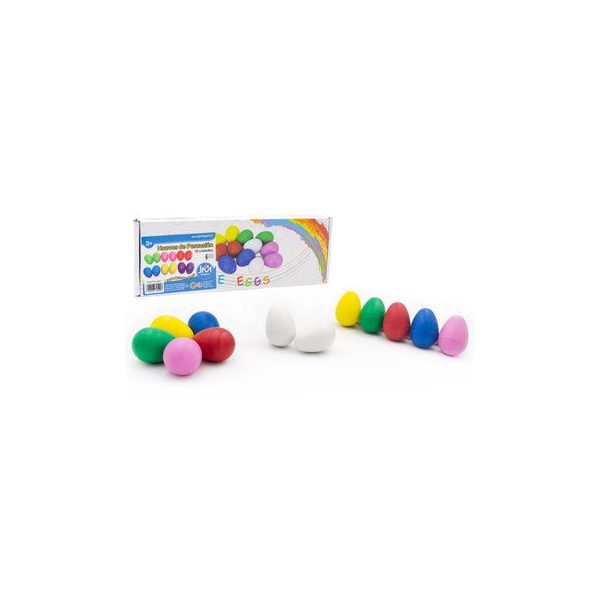 Set de 12 huevos plasticos de percusion, colores verde, azul, rosado, amarillo, blanco y rojo, medidas 7 x 5 cm. Fortalece la atencion y la concentracion. Estimula la memoria, el analisis, la sintesis y el razonamiento. Presentacion caja de carton medidas 29,5 x 10 x 7 cm.
