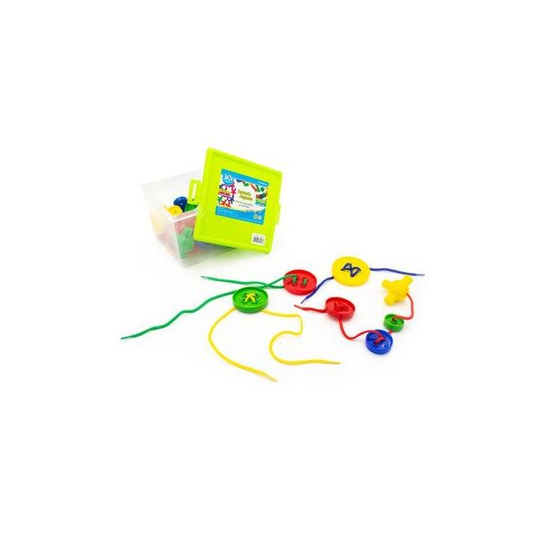 Set de 48 botones grandes para enlazar con medidas entre 3 a 7 cm. de diametro en 4 colores. Incluye 4 cordones. Presentacion en caja plastica.