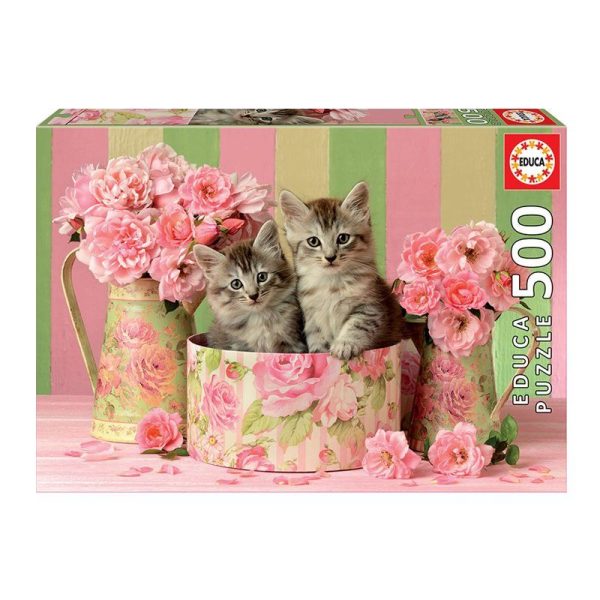 PUZZLE 500 PCS 48x34cm GATITOS CON ROSAS // 17960