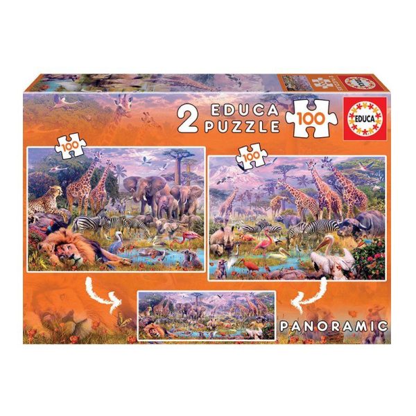 PUZZLE 2x100 PCS 40x28 ANIMALES SALVAJES // 18606