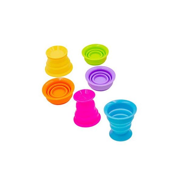Vasos soft con ventosas. Set contiene 6 unidades 6,5 x 6,5 cm. Presentacion en blister de plastico transparente medidas 25 x23,5 x 7,5 cm.