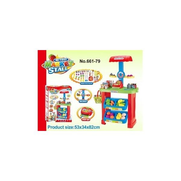 Puesto de supermercado con accesorios. Set armable de supermercados, fabricado en plastico de alta calidad. Medidas total armado 53 x34 82 cm. Presentacion en caja de carton con mango de plastico medidas 66,5 x51 x11 cm.