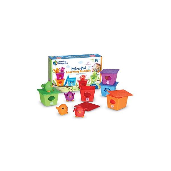 Dentro de cada una de las coloridas casitas para pájaros numeradas, encontrarás cinco pajaritos coloridos, cada uno con una expresión facial única. ¡Están listos para todo tipo de juegos, desde apilar y contar hasta formas, colores y aprendizaje socioemocional! Conjuntos de habilidades: Identificación de números Identificación de colores Motricidad fina