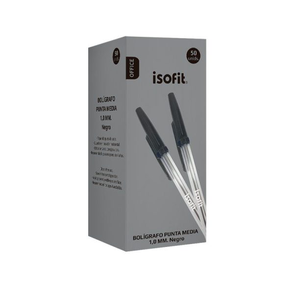 BOLIGRAFO ISOFIT 1,0MM PUNTA MEDIA NEGRO CAJA 50 UNI