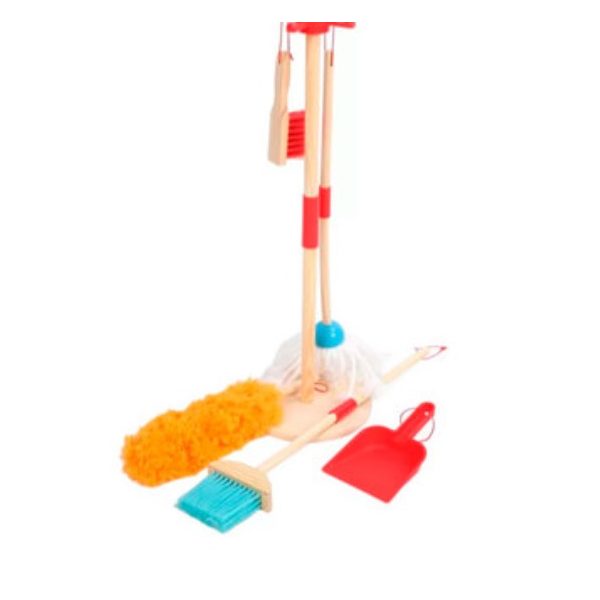 Maximize Kit de aseo de madera incluye 6 piezas diseñadas para que los niños y niñas puedan imitar tareas de limpieza de manera segura. Contiene una escoba, un recogedor, un plumero, un cepillo y una base para organizar los accesorios. Fabricado en madera resistente y materiales seguros, este set es ideal para fomentar la imaginación y el juego de roles, además de enseñar hábitos de limpieza de una forma entretenida. Presentación caja de cartón.