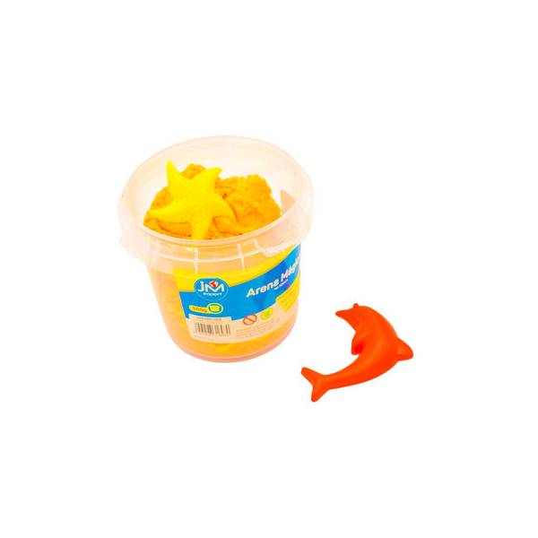 Pote de arena mágica de 500gr. Color naranja de suave textura. Estimula la creatividad y las habilidades motoras. Presentación pote plástico con tapa. Incluye 6 moldes.